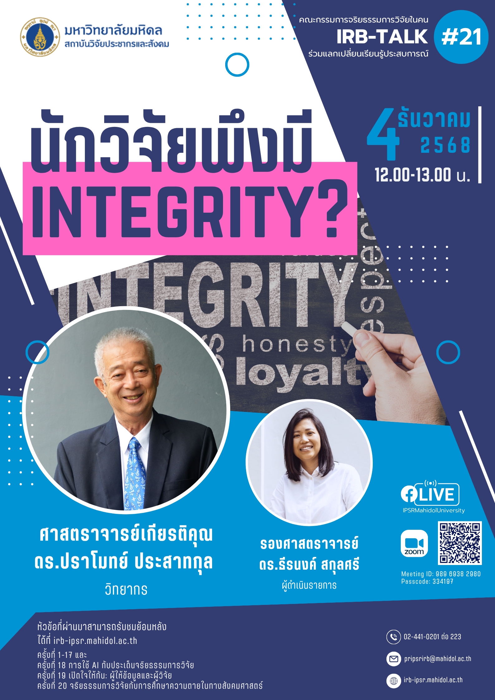 ครั้งที่ 21: 4 ธันวาคม 2568 "นักวิจัยพึงมี integrity?"